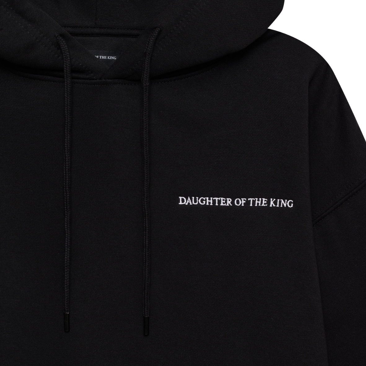 Cut from soft, heavyweight cotton, it features a relaxed silhouette that carries ease and presence. Embroidered with “Daughter of the King”, it becomes both a statement of identity and a layer of comfort.